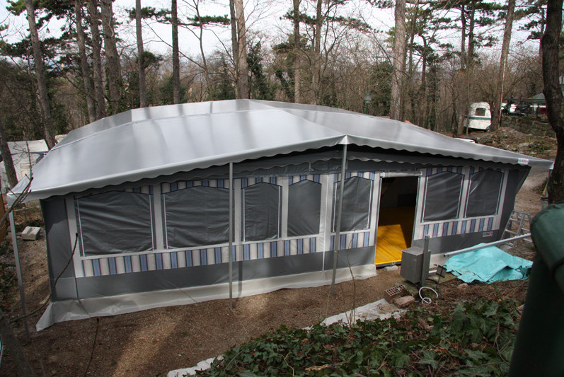 La copertura per caravan e veranda è sorretta dalla caravan.